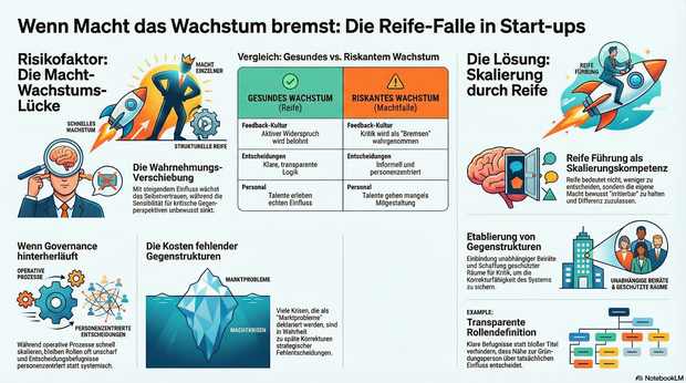 In der Frühphase ist Macht funktional. Gründer*innen tragen Risiko, treffen schnelle Entscheidungen, halten das Unternehmen zusammen. Ohne diese Verdichtung gäbe es kein Vorankommen. Problematisch wird es erst, wenn Macht schneller wächst als die Fähigkeit, mit ihr umzugehen.
