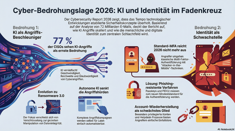 Auch die Identität wird 2026 zum zentralen Angriffspunkt. Bedrohungsakteure konzentrieren sich zunehmend darauf, Authentifizierungs- und Wiederherstellungsprozesse zu unterlaufen – selbst dort, wo moderne Sicherheitsmechanismen im Einsatz sind.